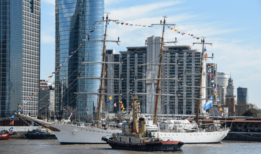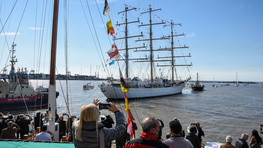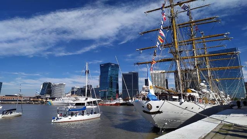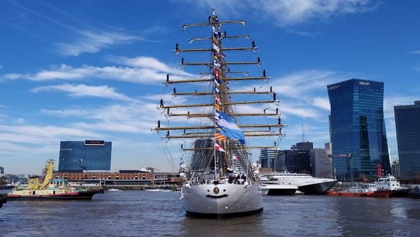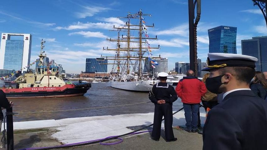 El buque escuela de la Armada Argentina zarpó este sábado al mediodía del Apostadero Naval Buenos Aires. Para despedirla se dieron cita familiares, amigos y gran convocatoria de veleros.