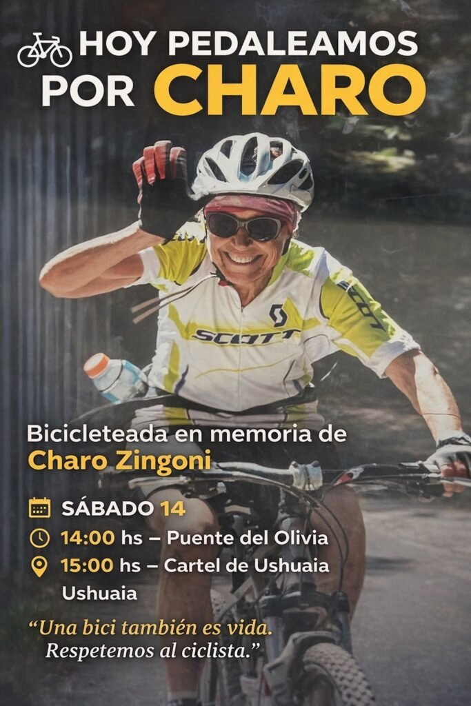 La actividad se realizará el sábado 14 en Ushuaia, a un mes del siniestro que le costó la vida. La convocatoria busca recordar a Charo Zingoni, acompañar a su familia y pedir mayor respeto y conciencia vial para quienes circulan en bicicleta.