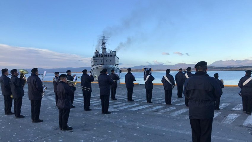 El «Puerto Argentino» había zarpado el 5 de noviembre del año pasado de la Base Naval Puerto Belgrano, para desempeñar funciones en el Área Naval Austral. En su derrotero cumplió con la Patrulla Antártica Naval Combinada (PANC) 2020/21, que se desarrolla todos los años junto a la Armada de Chile; y como Buque de Estación, realizo relevos de personal y material en los Puestos de Control y Vigilancia.