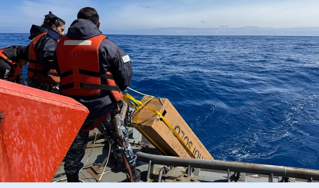 Durante su navegación por el Pasaje de Drake, el rompehielos ARA “Almirante Irízar” lanzó la primera de seis boyas perfiladoras del programa internacional ARGO, aportadas por el Woods Hole Oceanographic Institution, para medir temperatura y salinidad del océano y alimentar modelos climáticos y pronósticos en tiempo real. La Cabo Primero Nadia Florencia Saluk explicó el proceso de activación: “Es con un imán que se traslada por una ventana de la caja… Luego de unos 6 minutos ya está activado”.