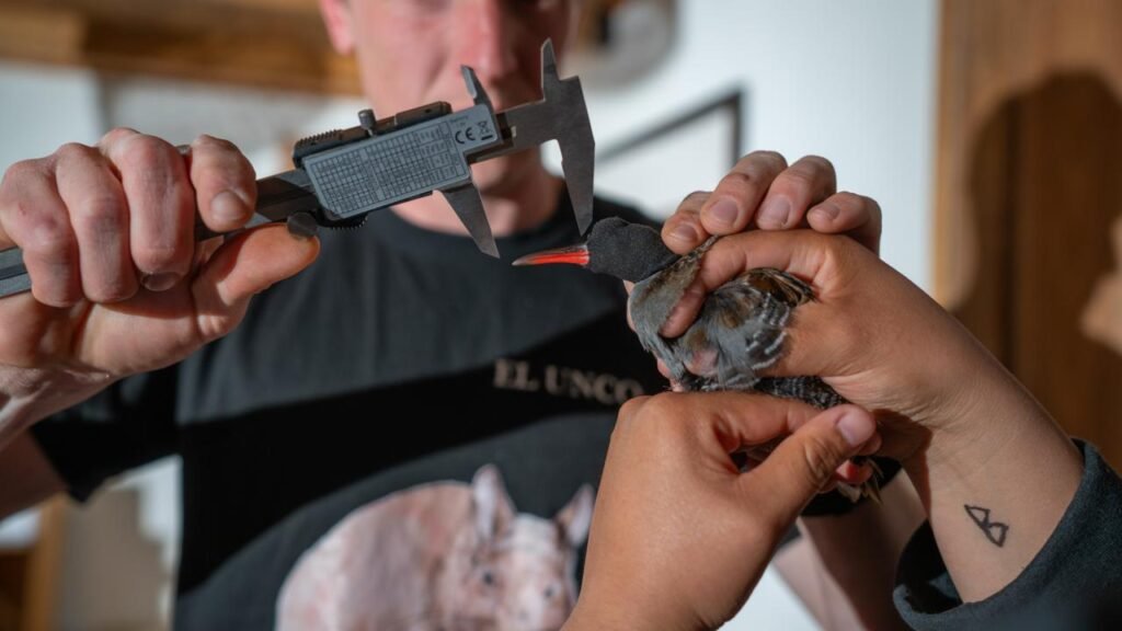 A partir de esa señal, decidieron aumentar la frecuencia del seguimiento y así lograron localizar dos nidos durante la temporada. Ese paso permitió colocar cámaras y registrar escenas poco conocidas hasta ahora. “Pudimos observar a ambos adultos participando de la crianza, turnándose en el nido mientras el otro busca alimento”, cuenta Jaquier, además de documentar la eclosión de los huevos y los primeros días de vida de los pichones.