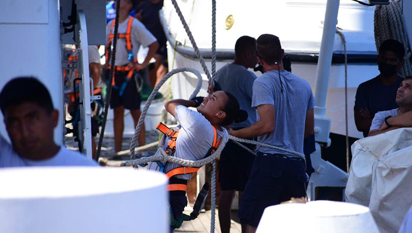 Al respecto, el cadete de 4º año cuerpo general de la Armada de México Luis Arturo Lara Navarro expresó: “Fue increíble tener esta posibilidad, no imaginé que podía llegar a subir, nosotros estamos acostumbrados a subir por alto todas las mañanas a las 6 hasta el sobrejuanete, de ahí bajamos y vamos a desayunar y conocemos por supuesto nuestro buque. El subir ahora, en un buque diferente, fue un desafío, porque nos fuimos encontrando con variantes, por ejemplo, el paso arraigado está mucho más inclinado aquí y fue un poco complicado, pero fue resuelto. La vista allá arriba es increíble también. Es una buena experiencia para contar, es una subida por alto internacional”.