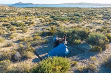 La RP1 se pega al Atlántico como un hilo que cose la costa. Cerca de Camarones se puede acampar de forma gratuita en dos de los sitios naturales más i…