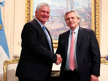 Télam - El presidente Alberto Fernández recibió hoy a su par de Cuba, Miguel Díaz-Canel, quien arribó a nuestro país el domingo pasado con el propósit…