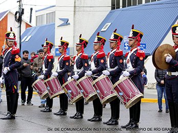 Bajo un cielo gris que por momentos descargaba una fina y tenue llovizna hizo su primera presentación de este lunes de Vigilia la Fanfarria Militar Alt…
