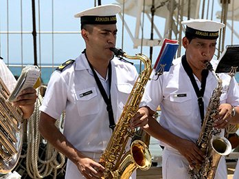 La banda de música a bordo es uno de los símbolos del velero argentino: sus melodías acompañan cada entrada y salida de puerto y los eventos protoc…