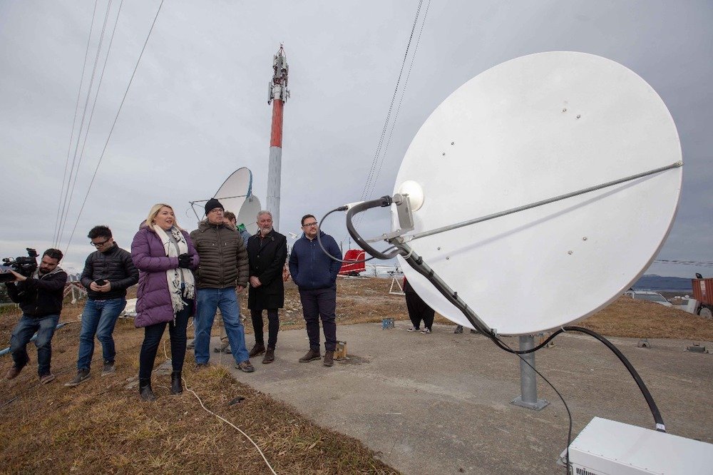 Sur54.com - Rosana Bertone, junto al director del canal 11 de Ushuaia, Carlos Dell' Aguila, Hugo Medina, representante del SATSAID, y el secretario de…