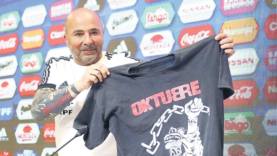 Página/12 - El entrenador del seleccionado argentino, Jorge Sampaoli, prometió utilizar una remera del grupo Patricio Rey y sus Redonditos de Ricota en…