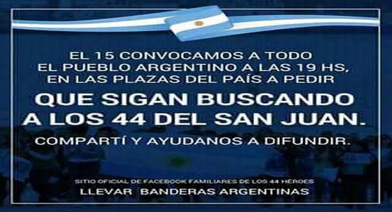 La Armada informó que junto a los buques extranjeros, sólo una nave de la fuerza, el destructor La Argentina, permanece en el área de búsqueda. El Islas Malvinas, que reemplazará al aviso Puerto Argentino en el área de búsqueda, lleva a bordo el minisubmarino ruso ROV Pantera Plus que permite acceder a profundidades mayores a los 1.000 metros. Y finalizó con una referencia al mes sin novedades del navío: “Al cumplirse 30 días desde el último enlace con el submarino ARA San Juan, la Armada Argentina continúa acompañando a los familiares de nuestros 44 camaradas y con las tareas de búsqueda”. *-*