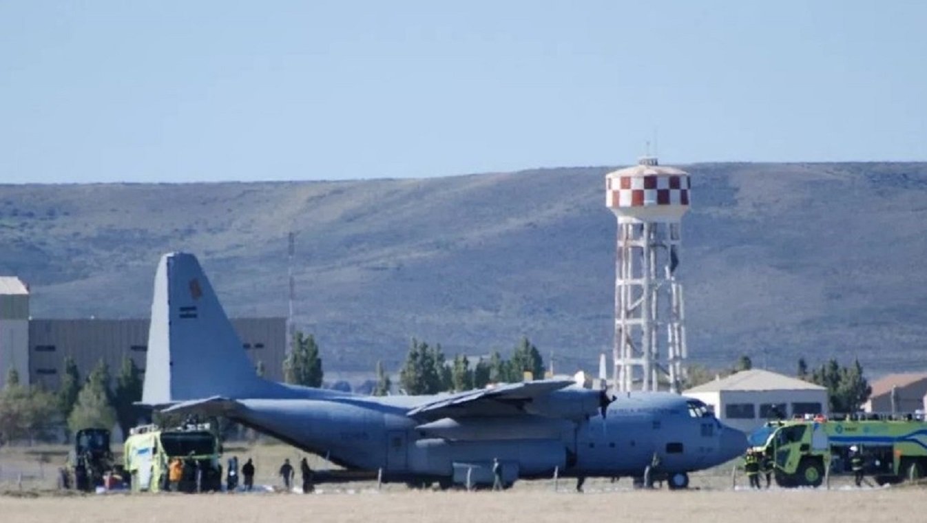 UN HÉRCULES DE LA FUERZA AÉREA TUVO QUE ATERRIZAR DE EMERGENCIA EN SANTA CRUZ Un avión Hércules C130 de la Fuerza Aérea Argentina tuvo que aterrizar de emergencia este sábado en el aeropuerto internacional de Río Gallegos. El Hércules C-130, matrícula TC-69 lleva el nombre “Puerto Argentino” y es la primera aeronave en cumplir con el programa de Modernización, Estandarización y Renovación de los Hércules del país. *-*