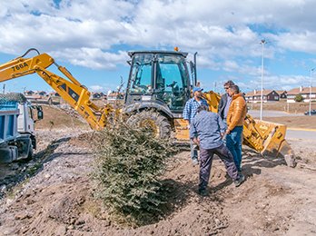 Personal de la Secretaría de Medio Ambiente de la Municipalidad de Ushuaia realizó el traslado y trasplante en Nave Tierra de árboles y arbustos autóct…