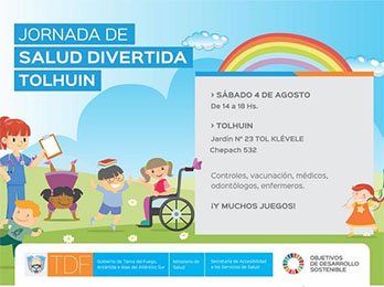 El Ministerio de Salud realizará una nueva "Jornada de Salud Divertida" en la ciudad de Tolhuin el sábado 4 de agosto, de 14 a 18 horas, en el Jardín N…