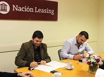 El vicegobernador, Juan Carlos Arcando, junto al presidente de la empresa Gancedo SA celebraron la firma del contrato para el inicio de la obra del Cor…